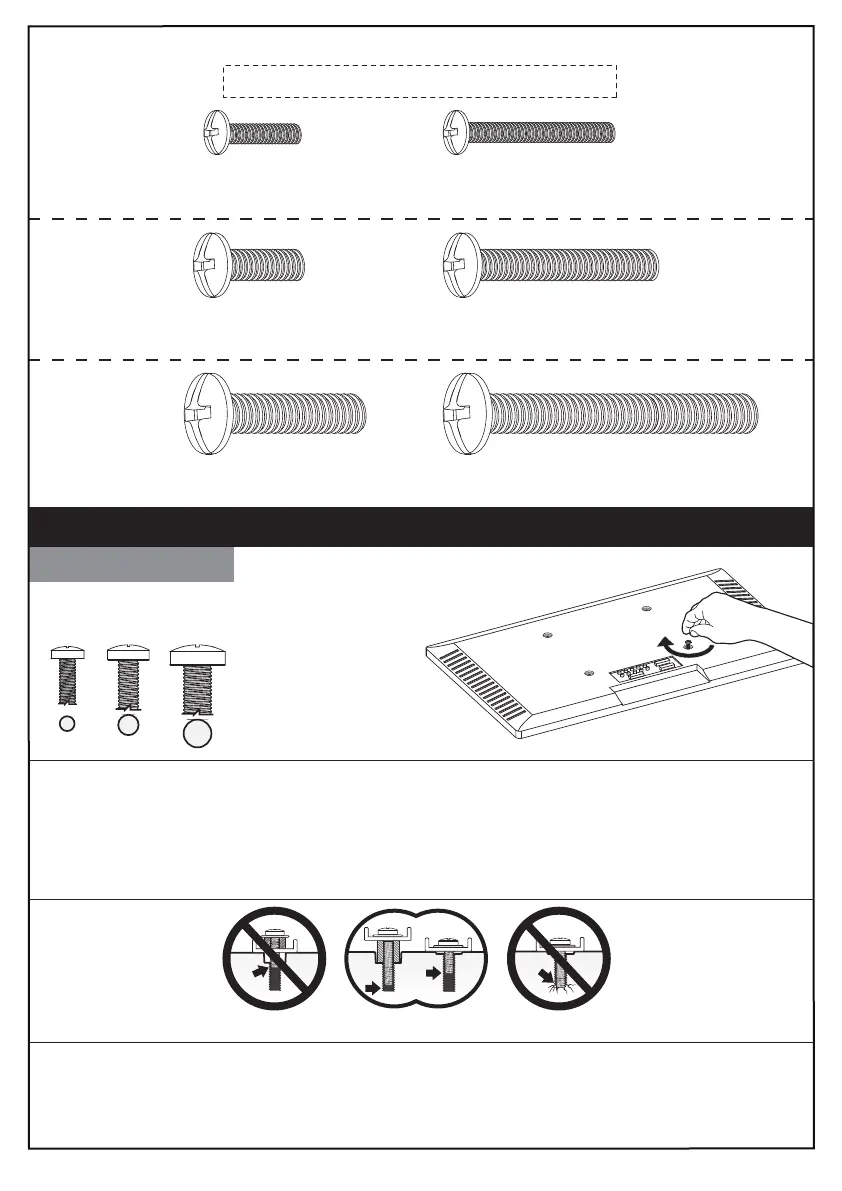 NOTE: Please DO NOT over tighten the TV bolts to avoid damaging your TV.