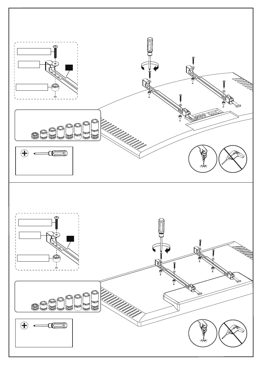 Spacers must be tall enough so that the curve on the back of the TV will not interfere with
