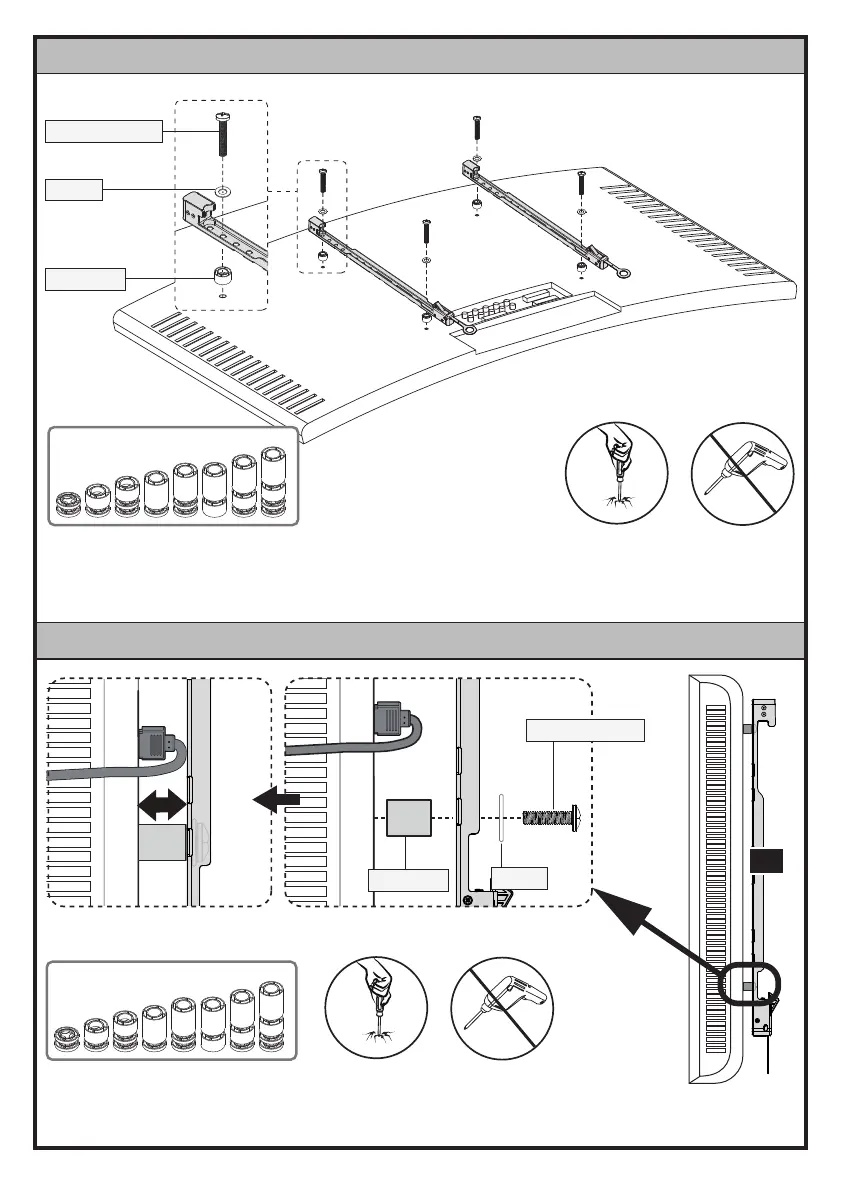 Use spacers [F1], [F2] or [F3] to create extra space between the TV and TV brackets.