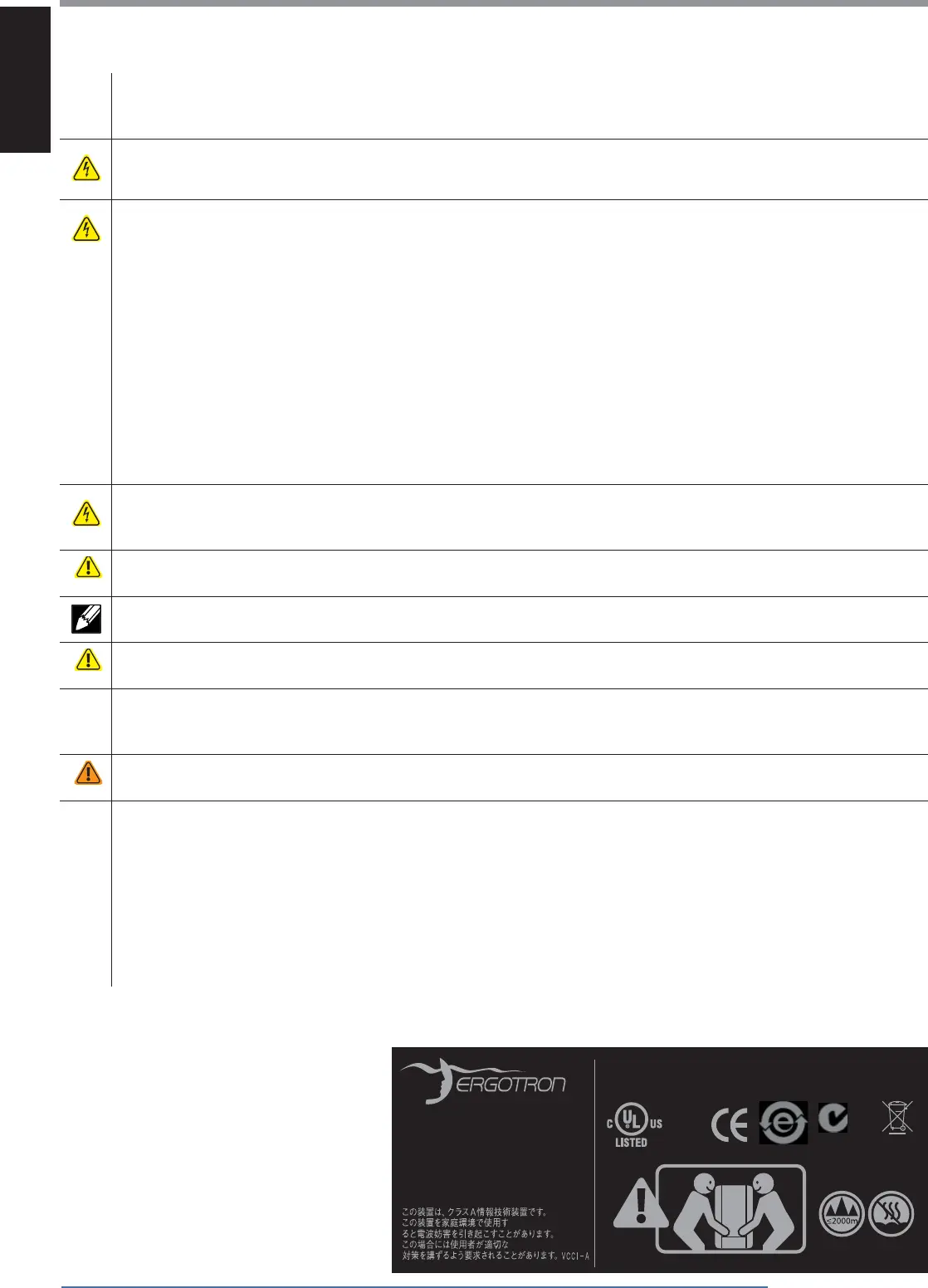 CAUTION: Changes or Modi cations not expressly approved by Ergotron could void the user’s authority to operate the equipment.