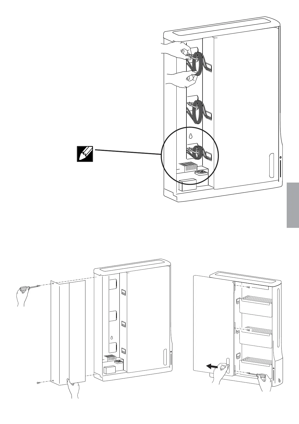 b. Open door and attach 3 inside screws saved from removal of left cover