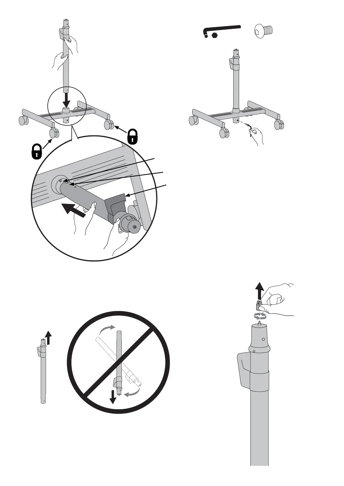 こちらの側を上に向けてください。ポールを逆向きにしないでください。
