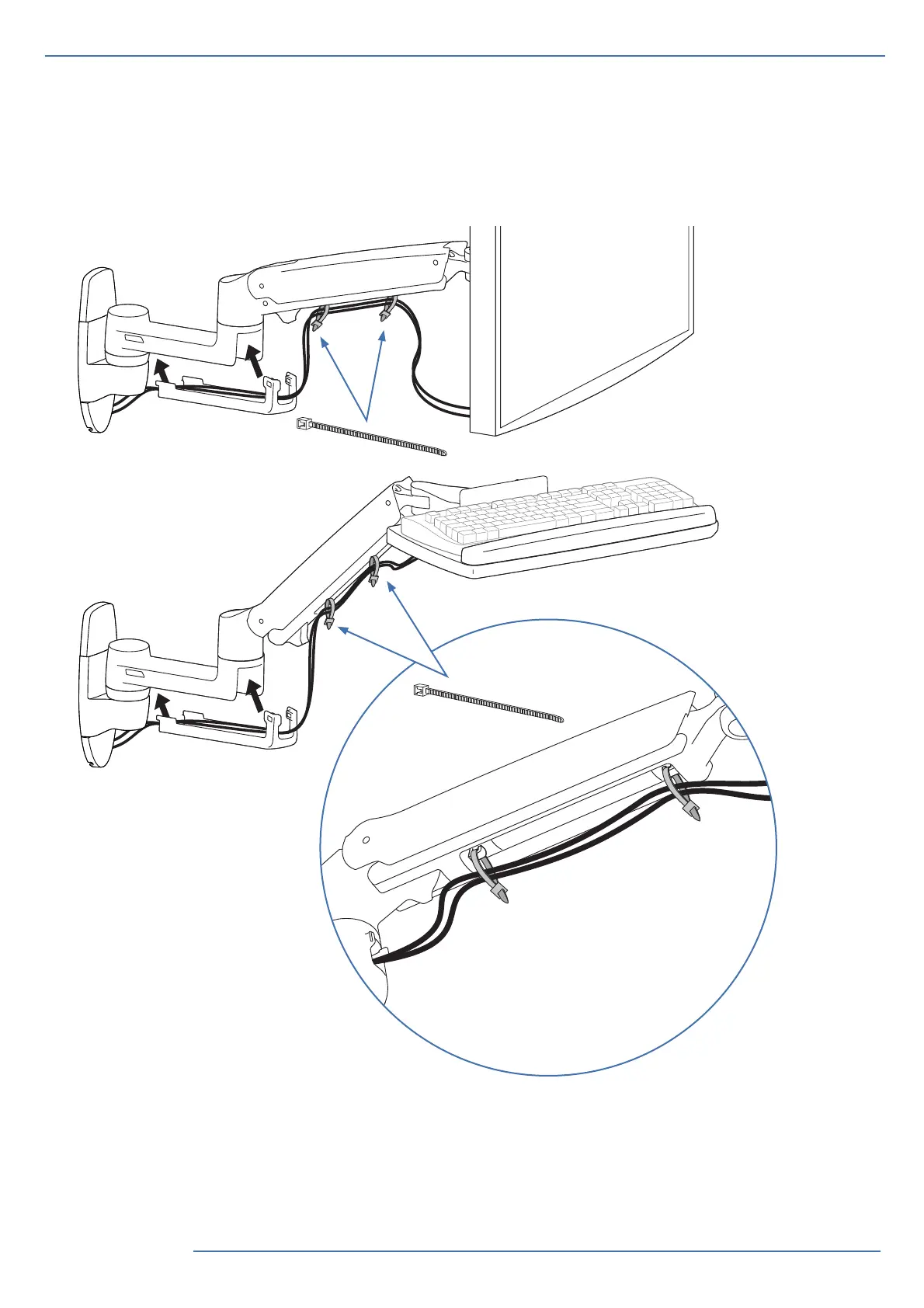 ケーブル配線はアームの移動が自由に行えるよう、多少たるみを持たせてください。