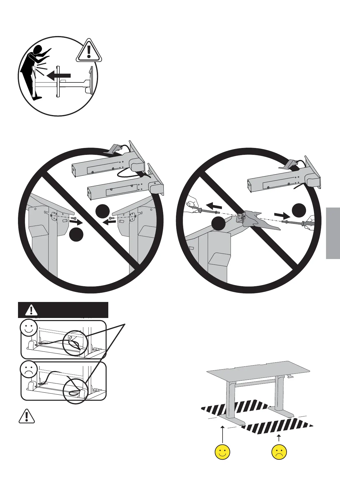 Failure to keep the brake cables away from sync rod and crossbars may restrict