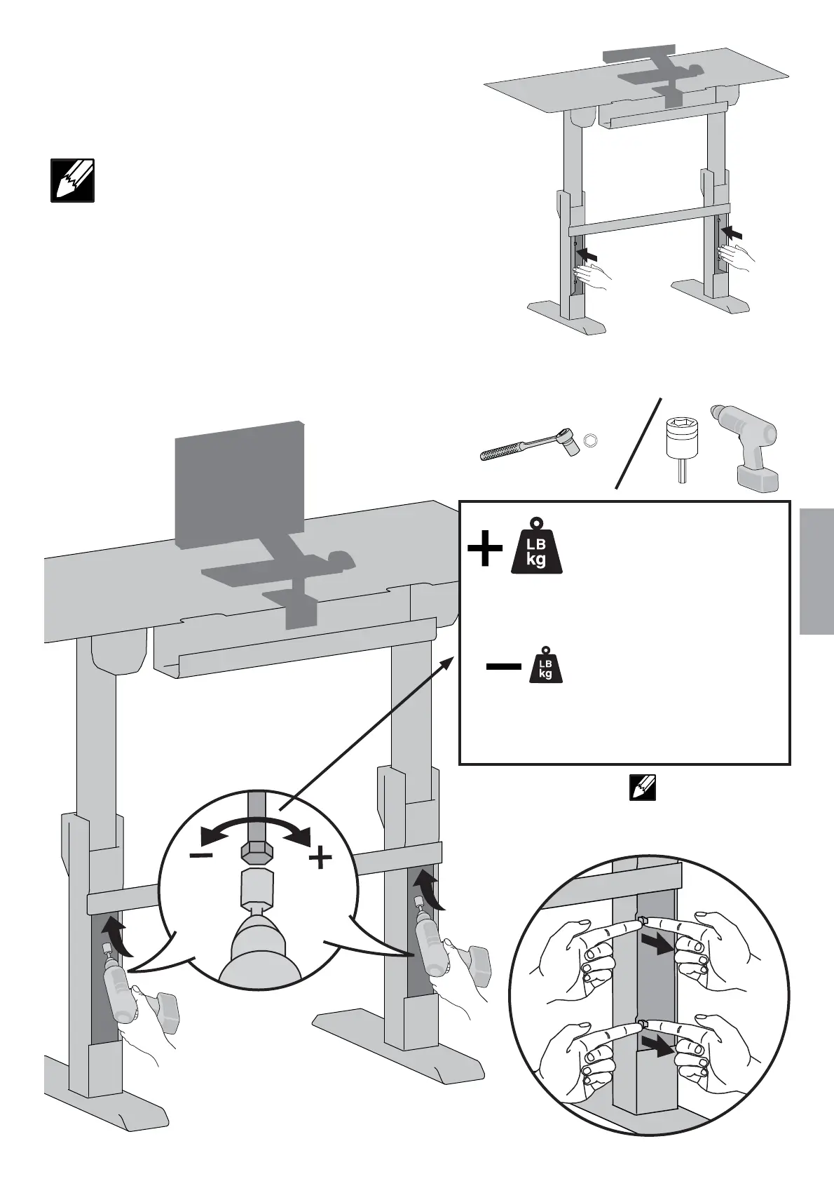 UseeitherasocketdrillorasocketwrenchtoadjusttheboltsAsocketdrillisrecommendedduetotheadjustment