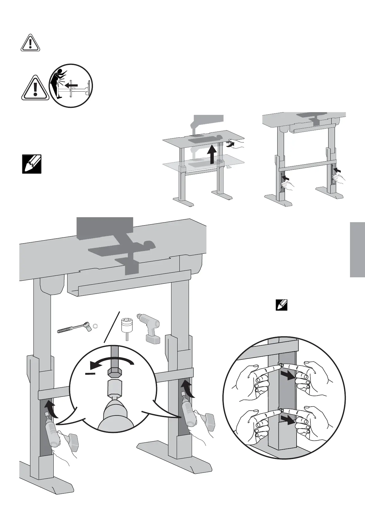 WARNING!DONOTtipdeskovertoadjustOnlyperformadjustmentwhiledeskisuprightFailureto