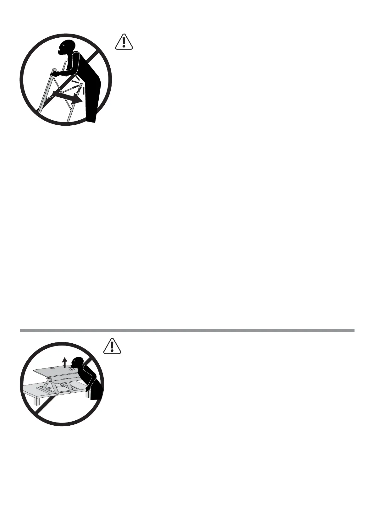 Die Nichtbeachtung dieser Warnung kann zu einer unbeabsichtigten Bewegung des Hebemechanismus führen, was zu möglichen