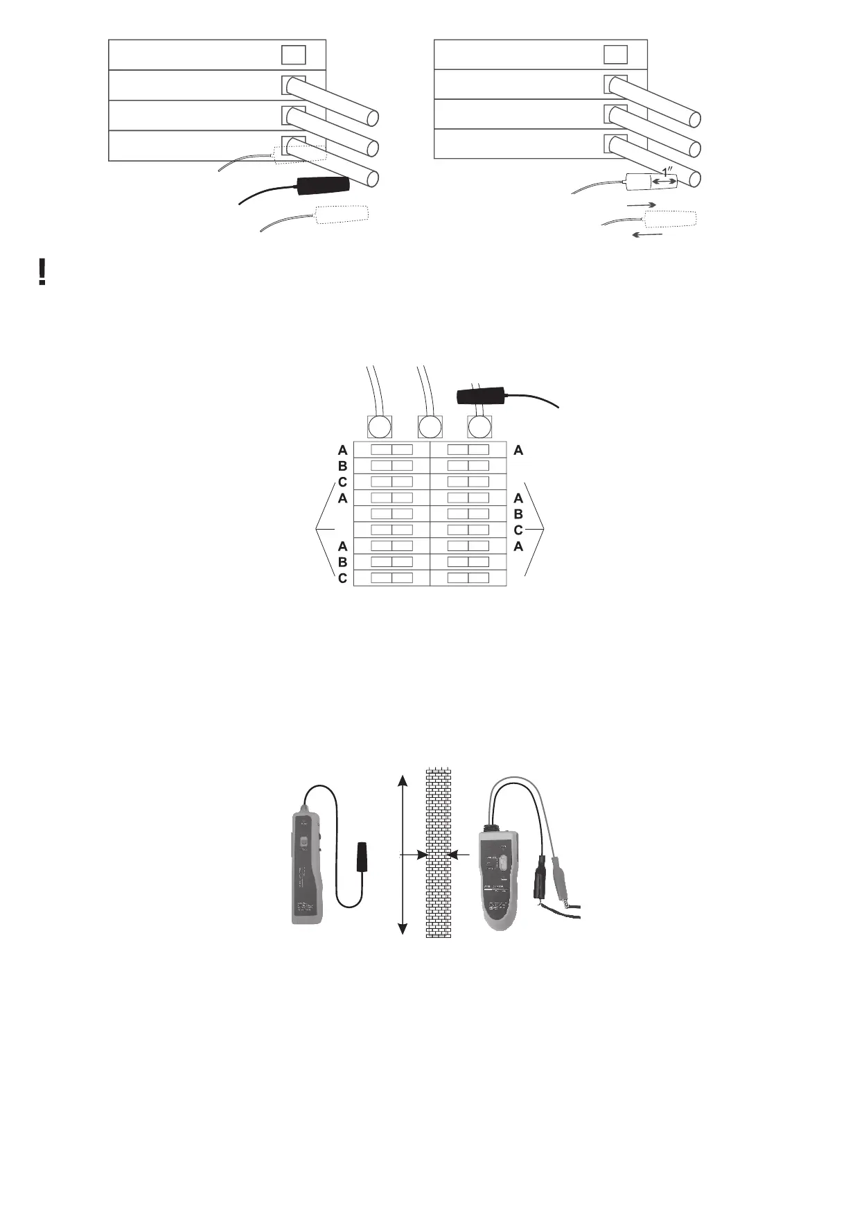 Prüfkabels bendet. Bewegen Sie den Sensor des Empfängers entlang des Kabelpfads. Der Punkt, an dem der Ton plötzlich aufhört, ist das