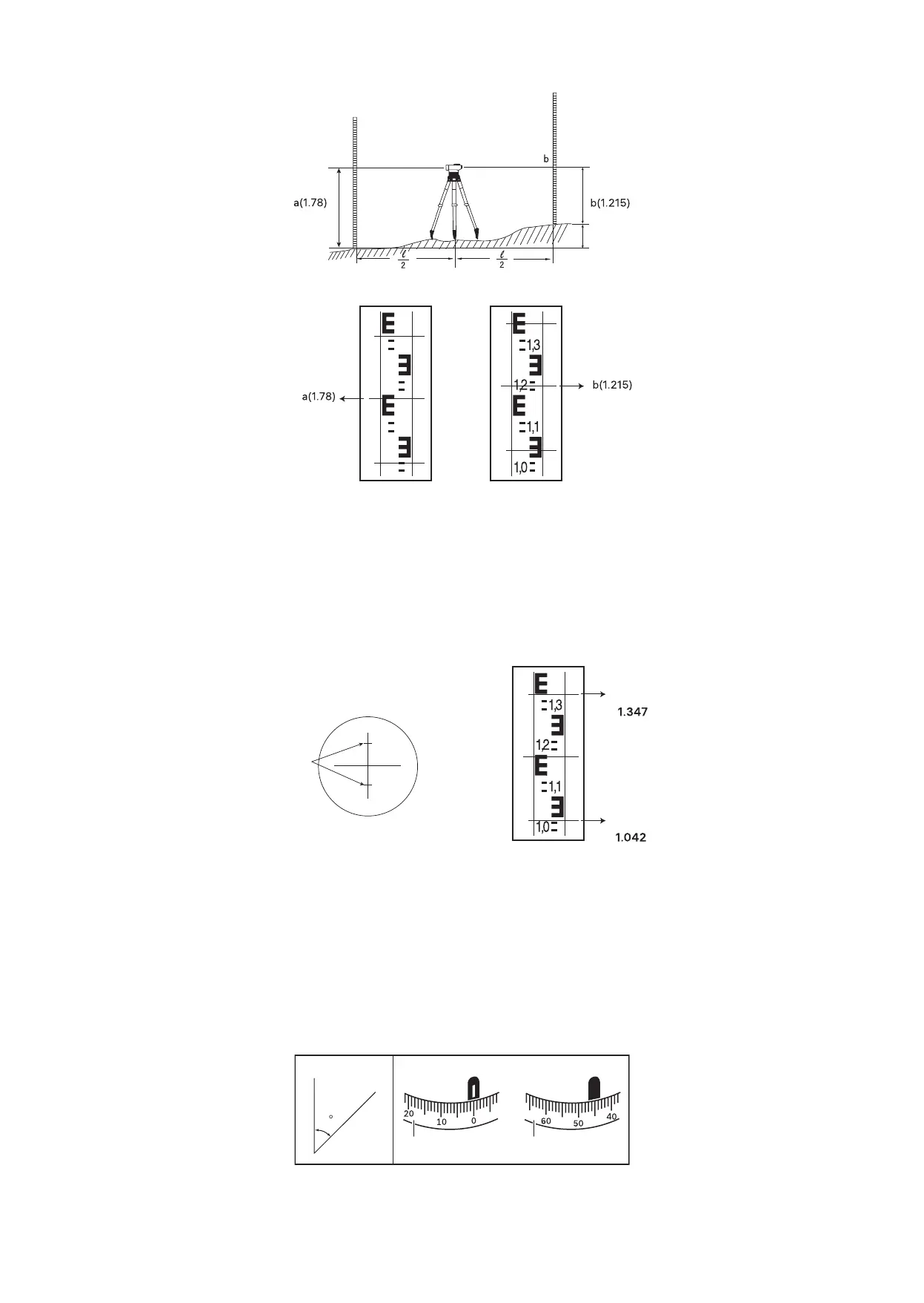 • Zaměřte přístroj na tyč B. Zaznamenejte změřený úhel referenční značky (3) na vodorovném kruhu (obr. 6).
