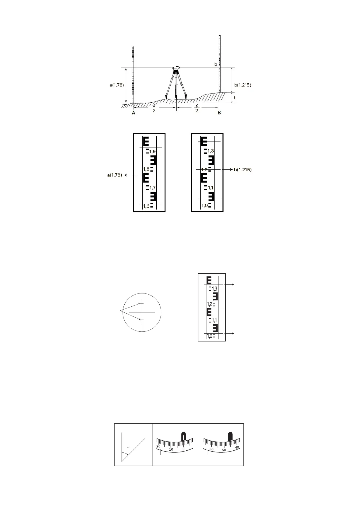 • Skieruj przyrząd na łatę B. Zapisz pomiar kąta oznaczenia referencyjnego (3) okręgu poziomego (Rys. 6).