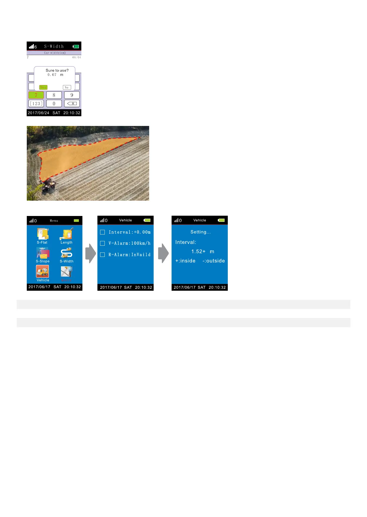 • Jármű mód. A jármű mód a szabálytalan alakú, nagy méretű telkek mérésére alkalmas.