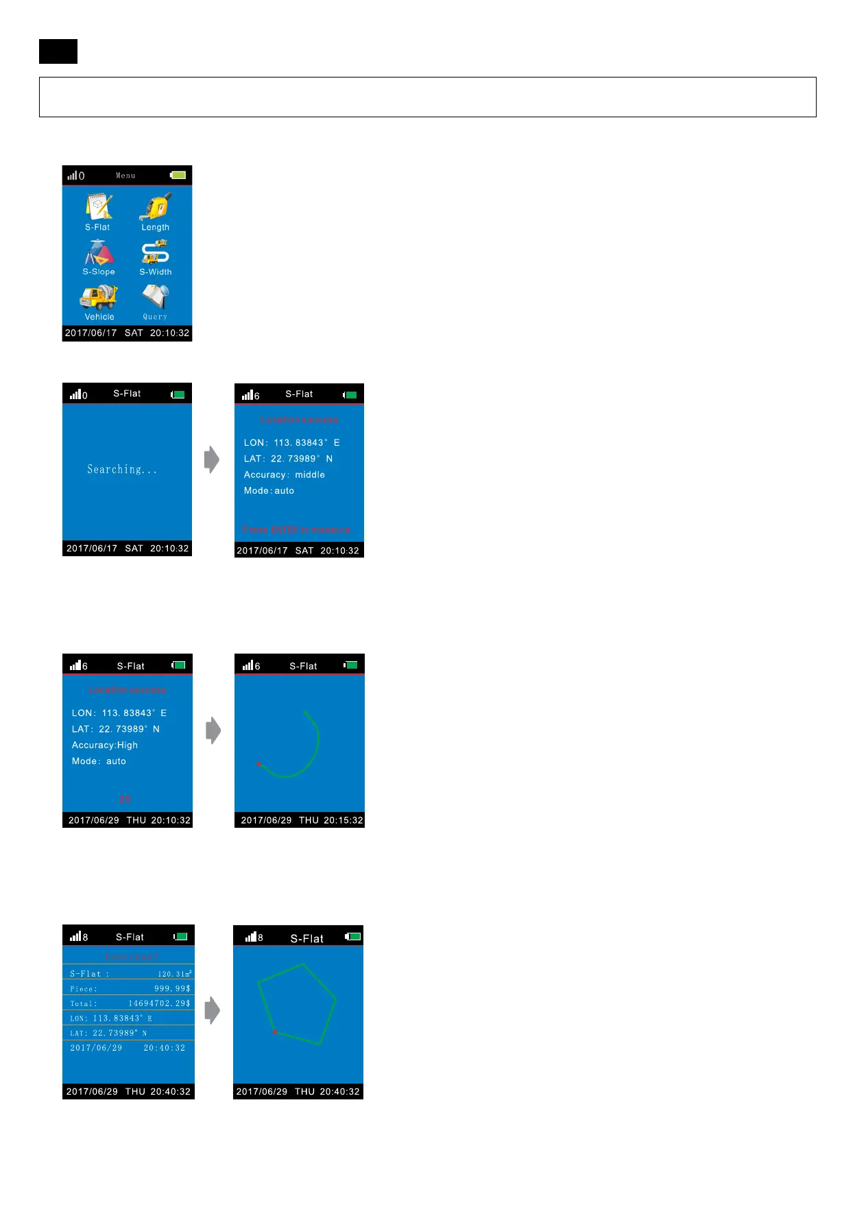 • Flat area measurement (auto). Select "S-Flat" in the menu, and then press ENTER to go to the measurement interface. To start