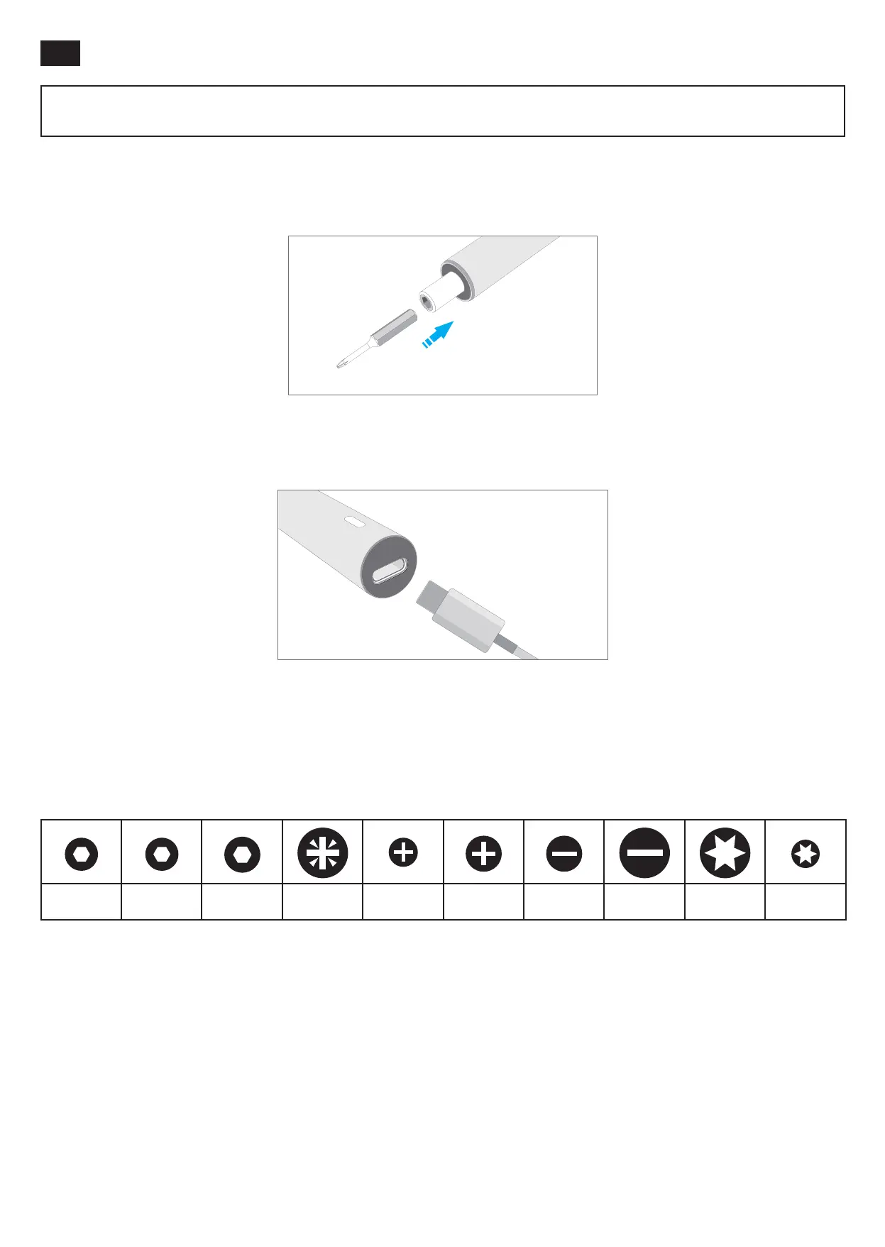 Il kit include: cacciavite elettrico, 10 inserti magnetici, cavo USB di tipo C, custodia, asta prolunga, guida all’utilizzo e garanzia.