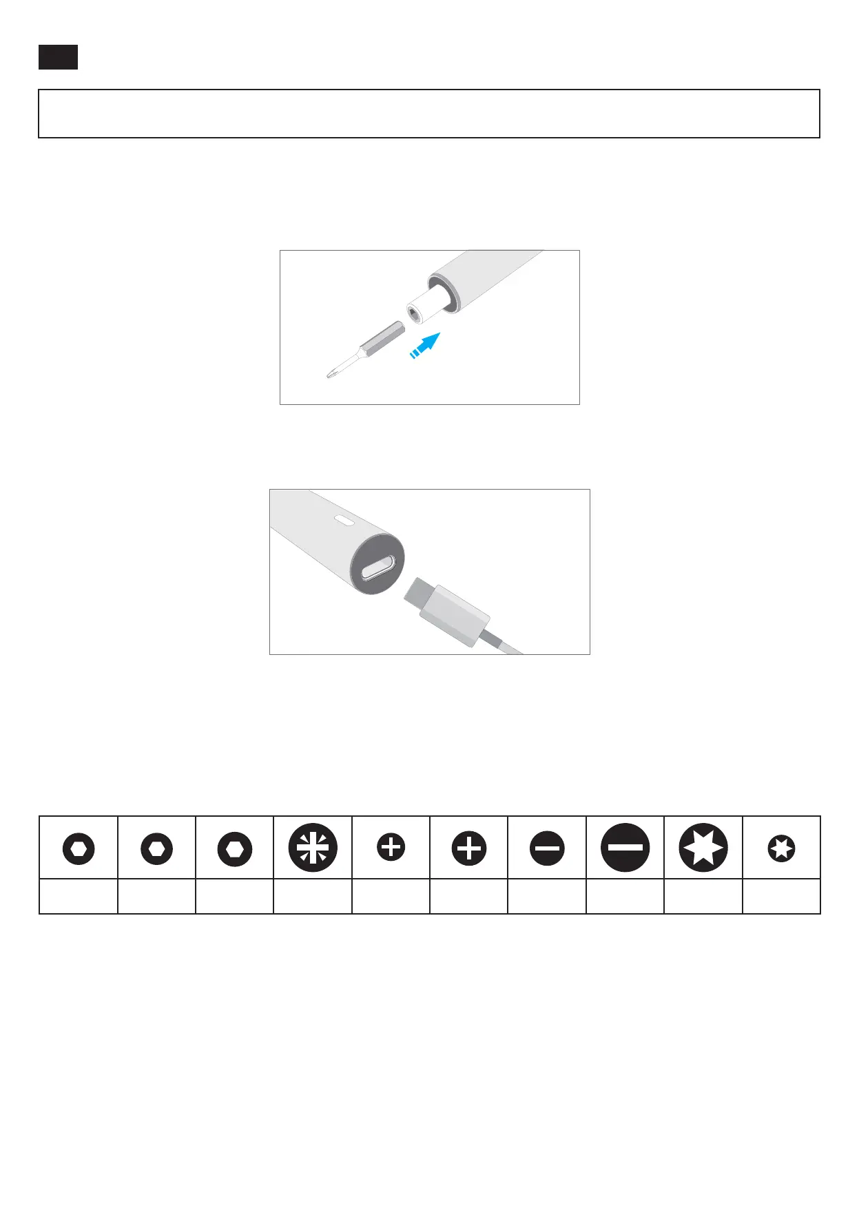 Zawartość zestawu: wkrętak elektryczny, 10 magnetycznych końcówek, przewód USB-C, pojemnik, przedłużka, instrukcja