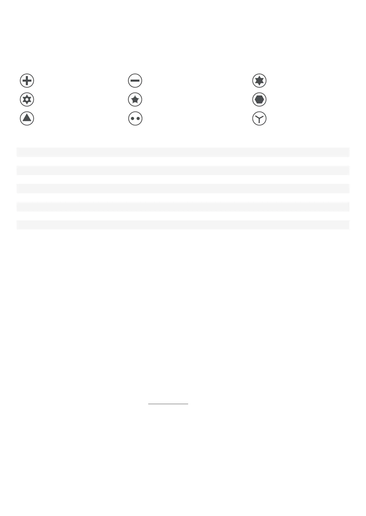 T5H, T6H, T8H, T10H, T15H P2 (Pentalobe 0.8), P5 (Pentalobe 1.2) H1.5, H2.0