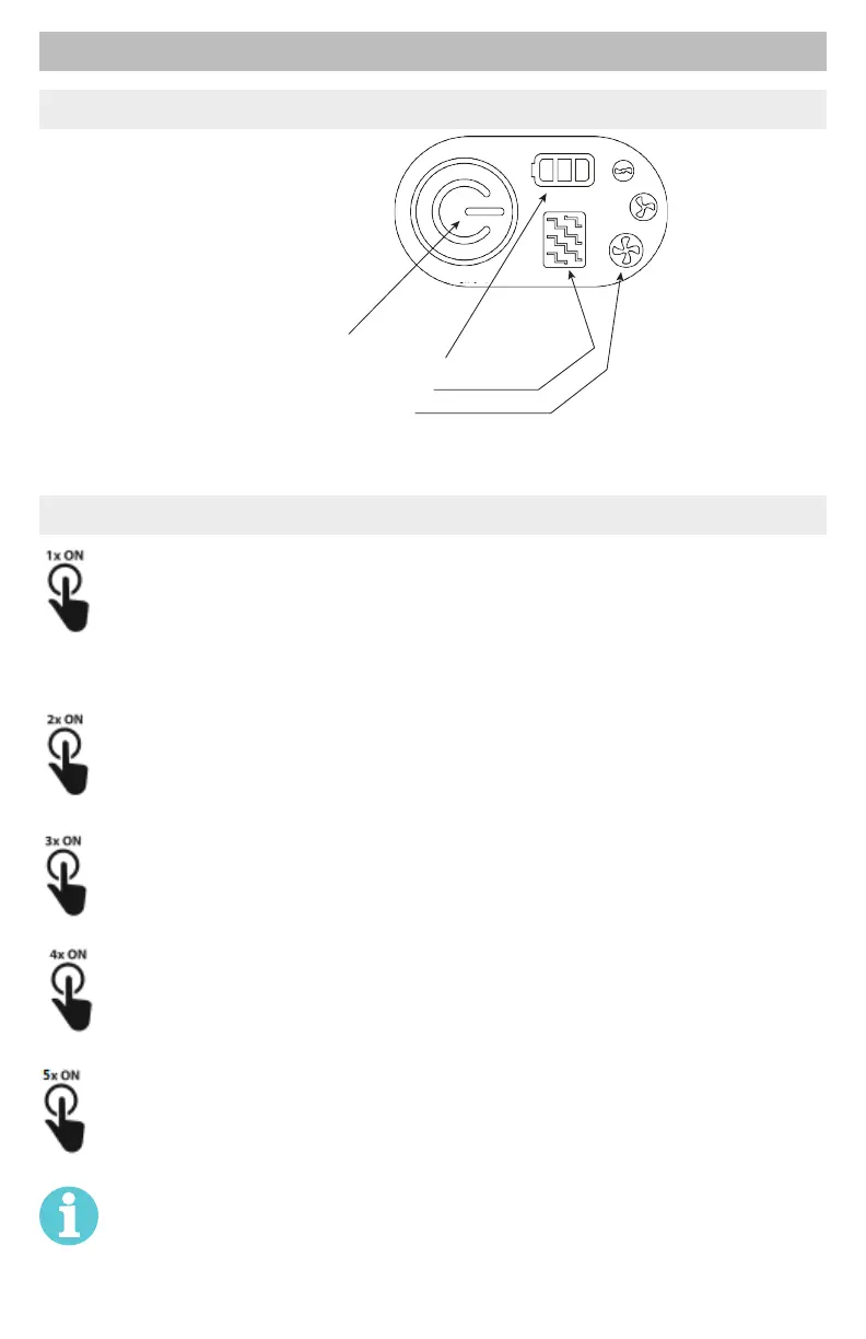 Press the ON button once again, the air ow reverts to level 1 (~170L/min).
