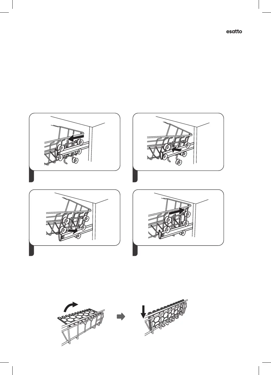 To make room for taller items in the upper basket, raise the cup rack upwards.
