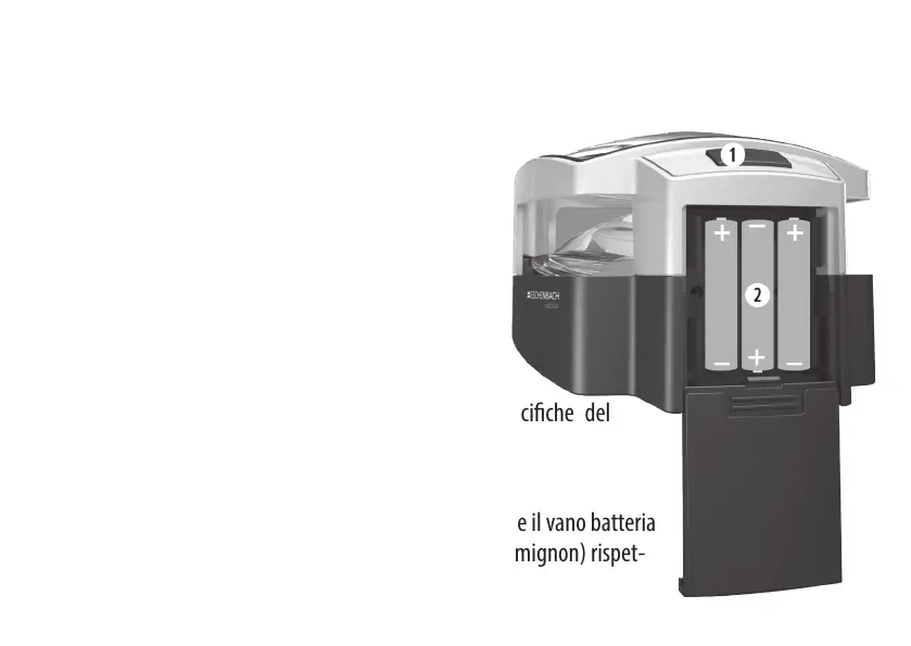 (w), inserire le batterie fornite (3 da 1,5 V, formato AA, mignon) rispet-
