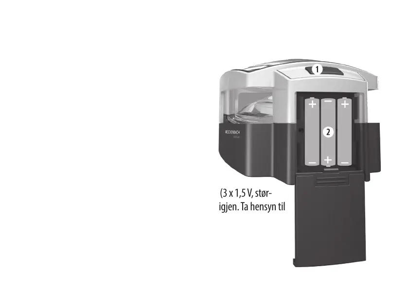åpne batterihuset (w), legg de medfølgende batteriene (3 x 1,5 V, stør-