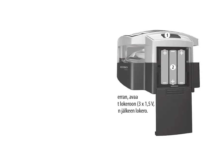 paristolokero (w), aseta laitteen mukana tulevat paristot lokeroon (3 x 1,5 V,