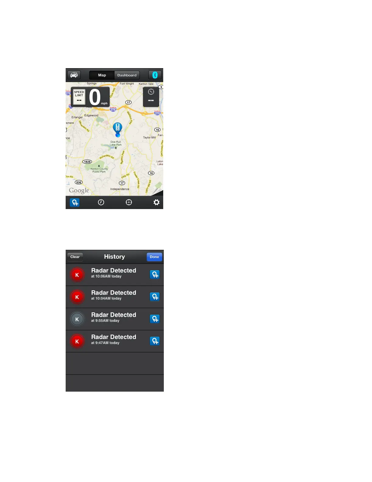 1. Tap the History Icon at the bottom of the screen. Your alert history will display.