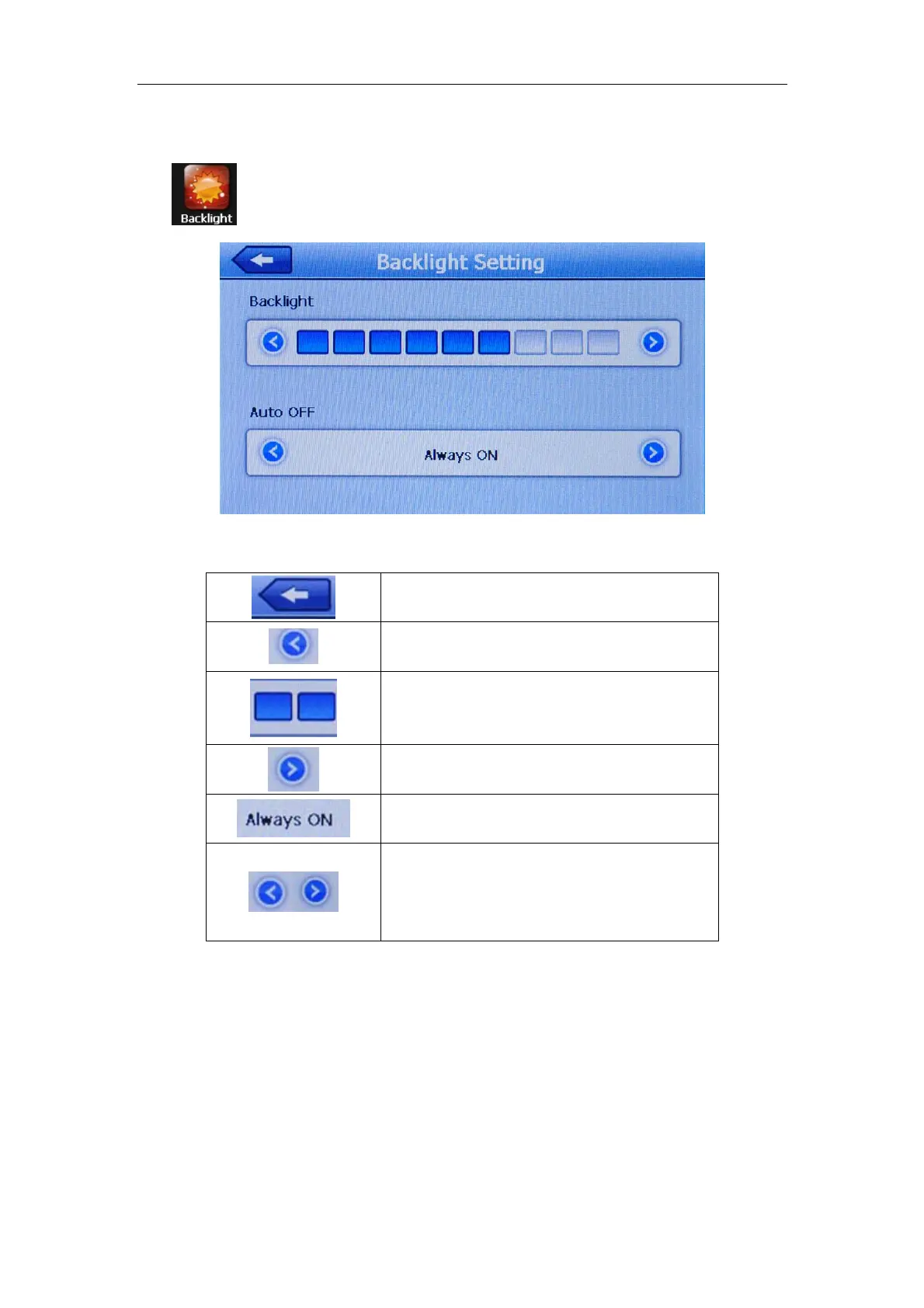 Tap inthemainmenutoopenthebacklightsettinginterface(Figure4‐25).