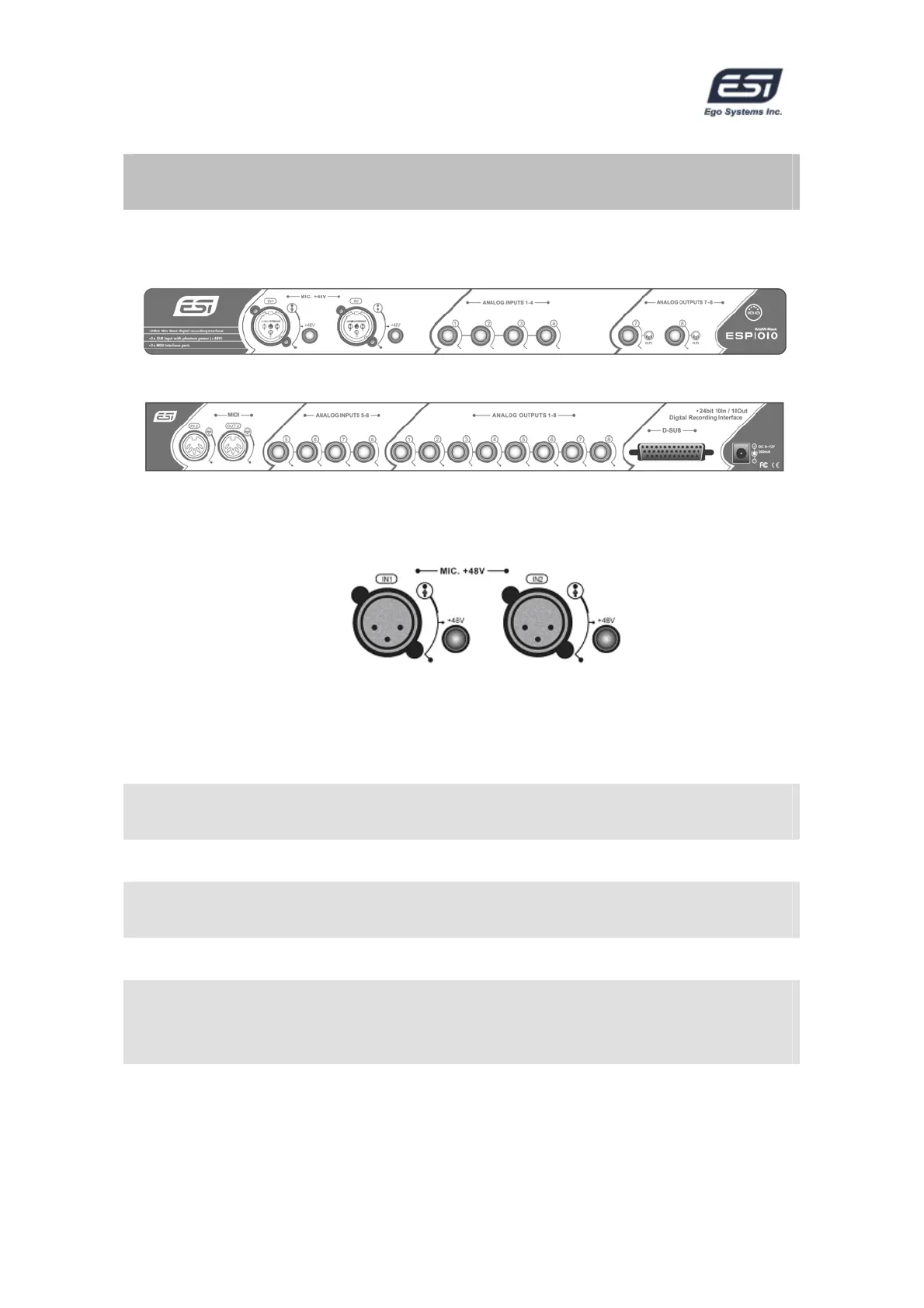 WARNING: To use the +48V Phantom power supply, you need to connect an