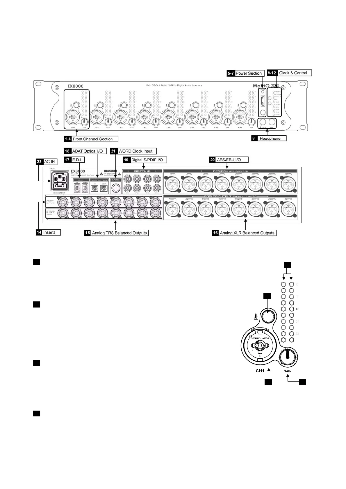 EX8000 provides 8 combo connectors (XLR and 1/4" TRS) on