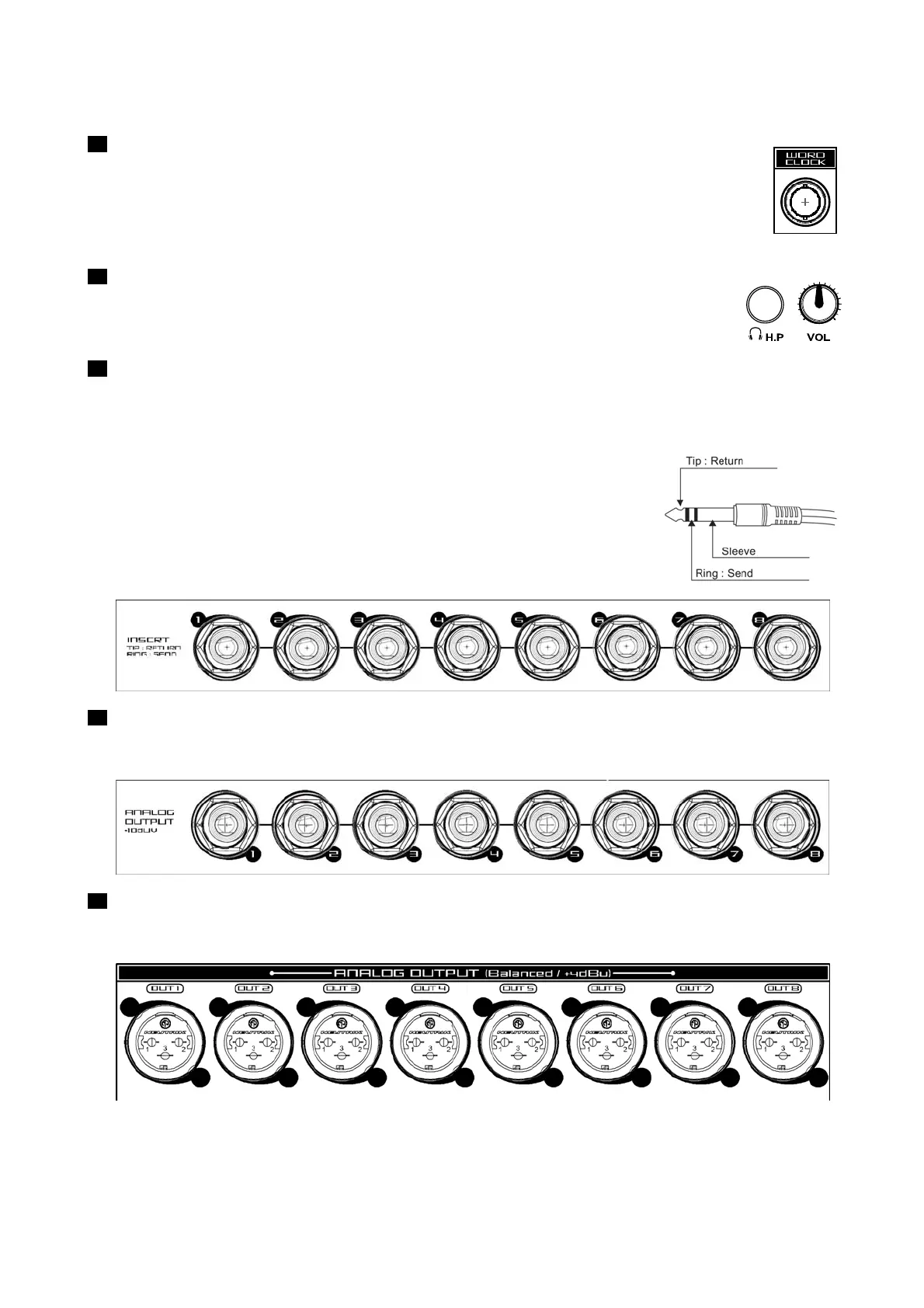 EX8000 has 8 balanced/unbalanced analog outputs (-10dBV) with TRS connectors.
