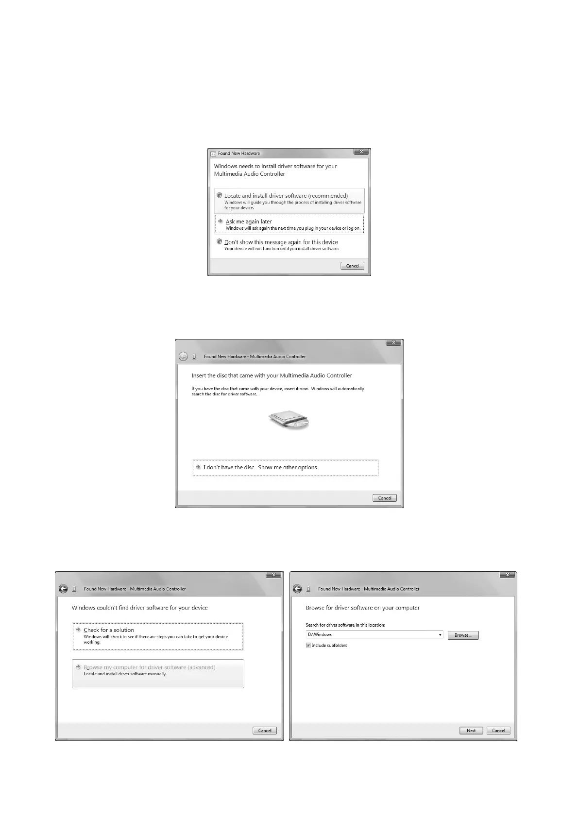 Select Locate and install driver software (recommended). Insert the driver CD only if you are