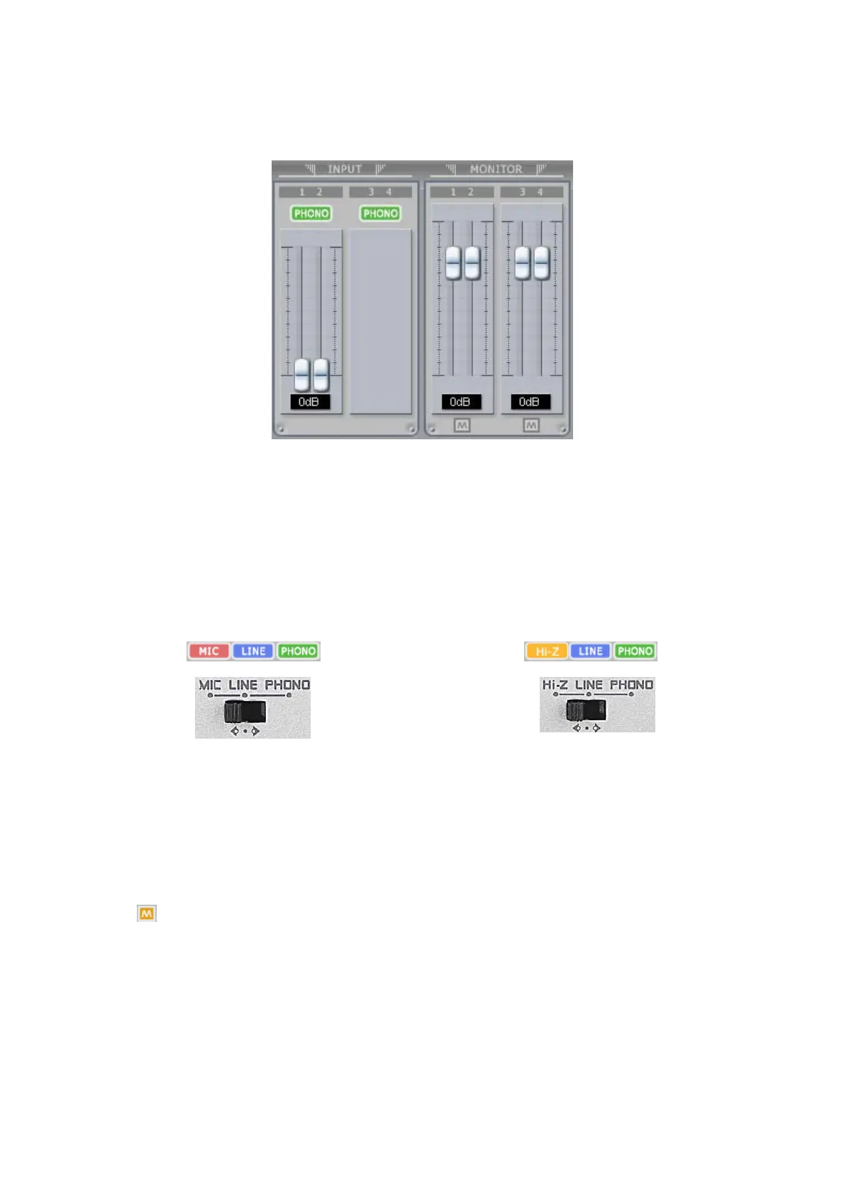 This is where you can adjust input monitoring level of U46DJ. Set the level using the mouse, mouse