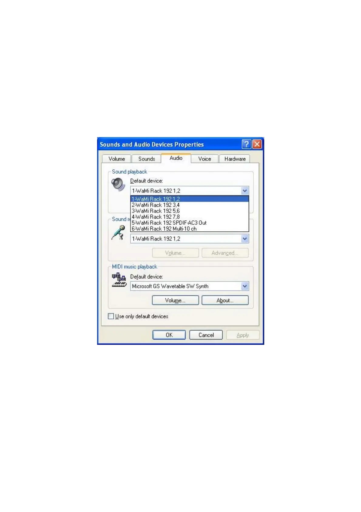 The Windows Multimedia setup is required to use WaMi Rack 192 Series as the sound