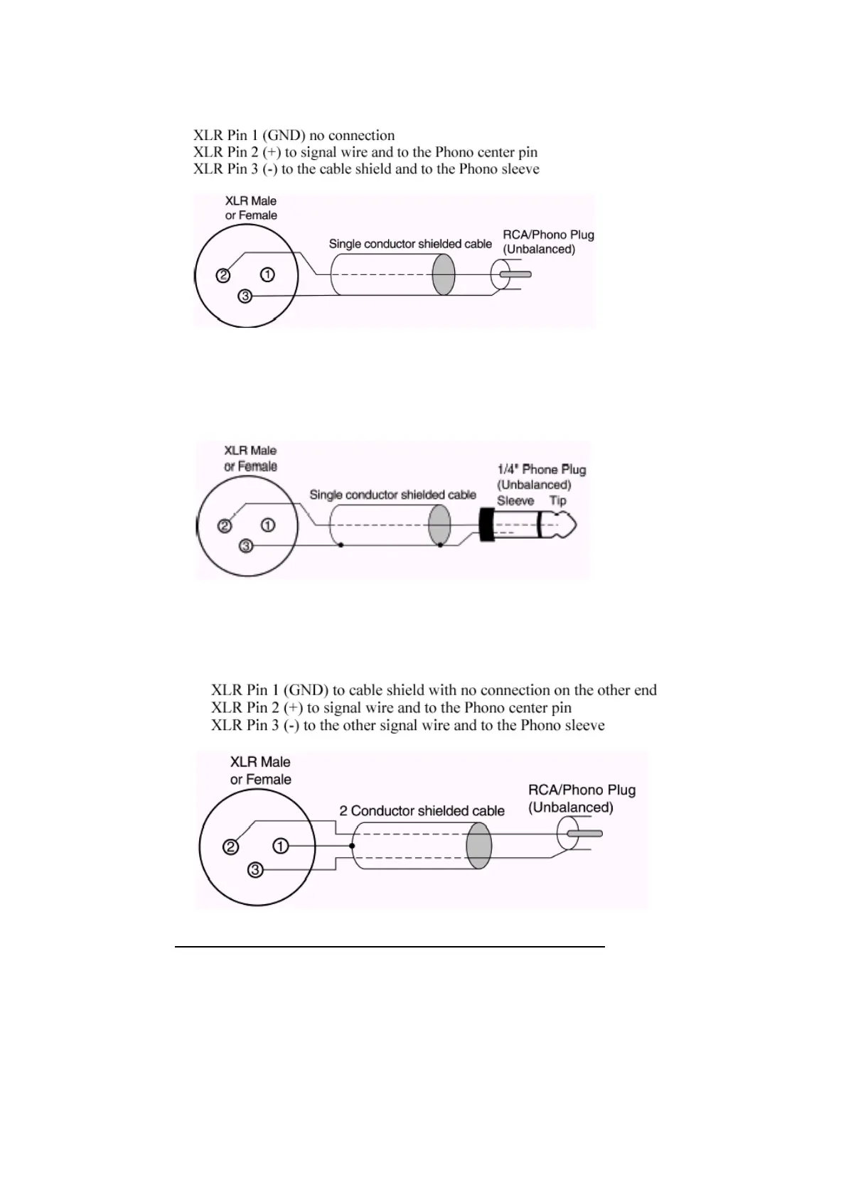 The wiring method for unbalanced connections with XLR connectors to unbalanced 1/4”