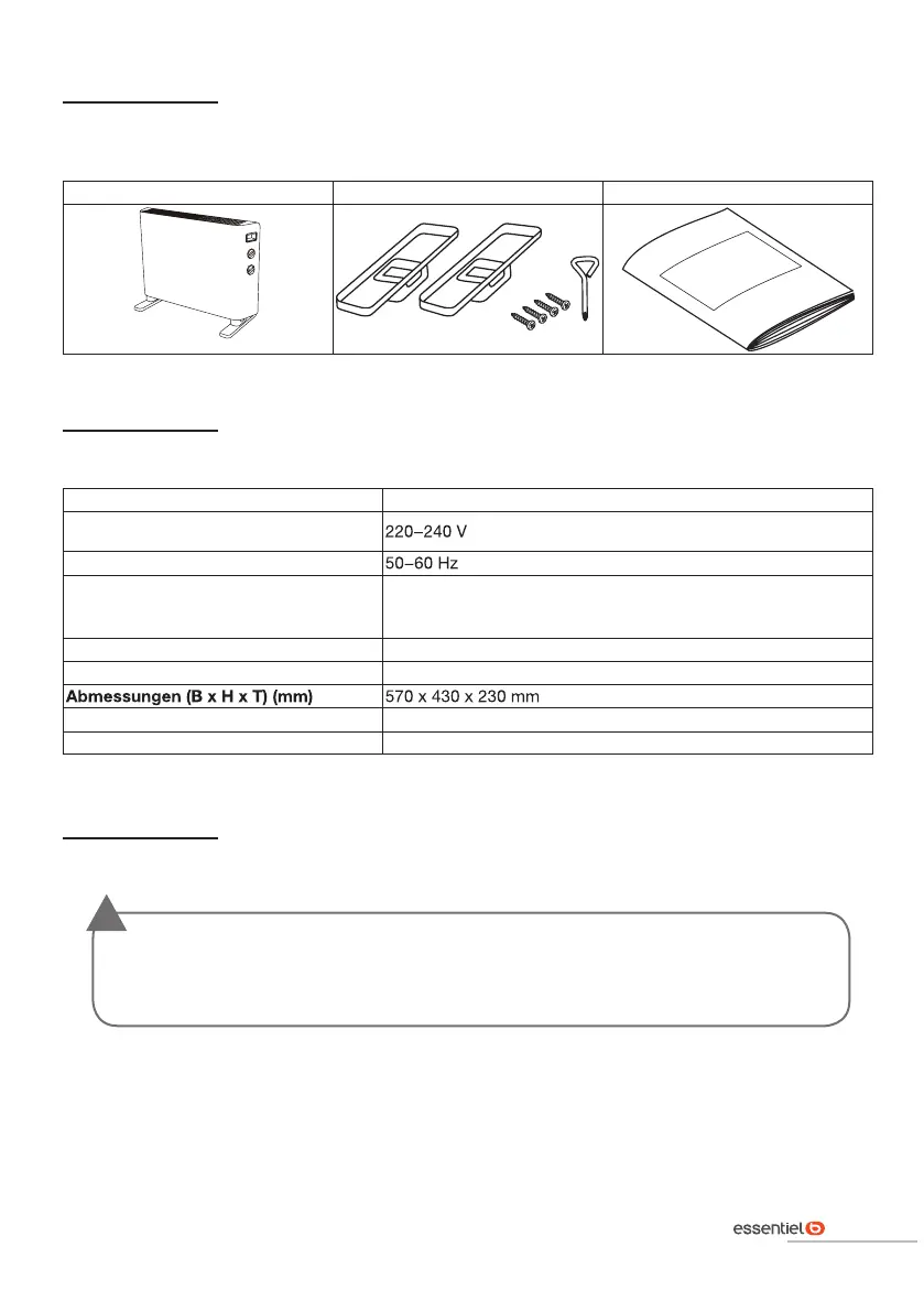 Heizgerät nicht, wenn es beschädigt ist. Achten Sie bei der Installation darauf, dass das Gerät nicht an das