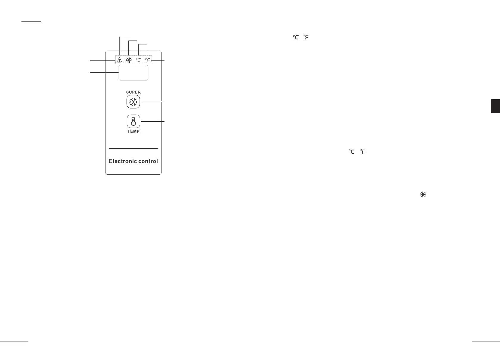 Celsius- oder Fahrenheit-Anzeige / schaltet sich ein und zeigt die aktuell ausgewählte