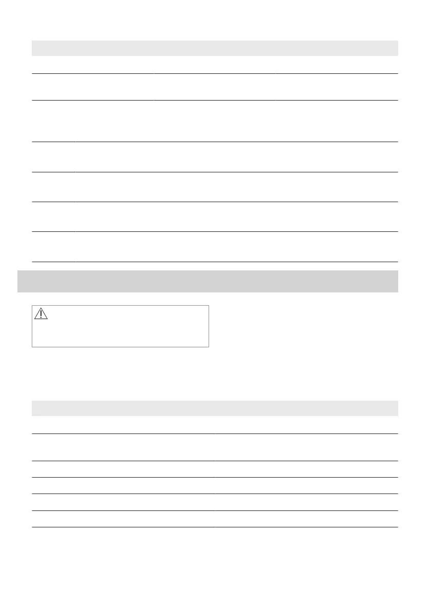 Dans tous les cas ne figurant pas dans ce tableau, veuillez contacter un service après-vente