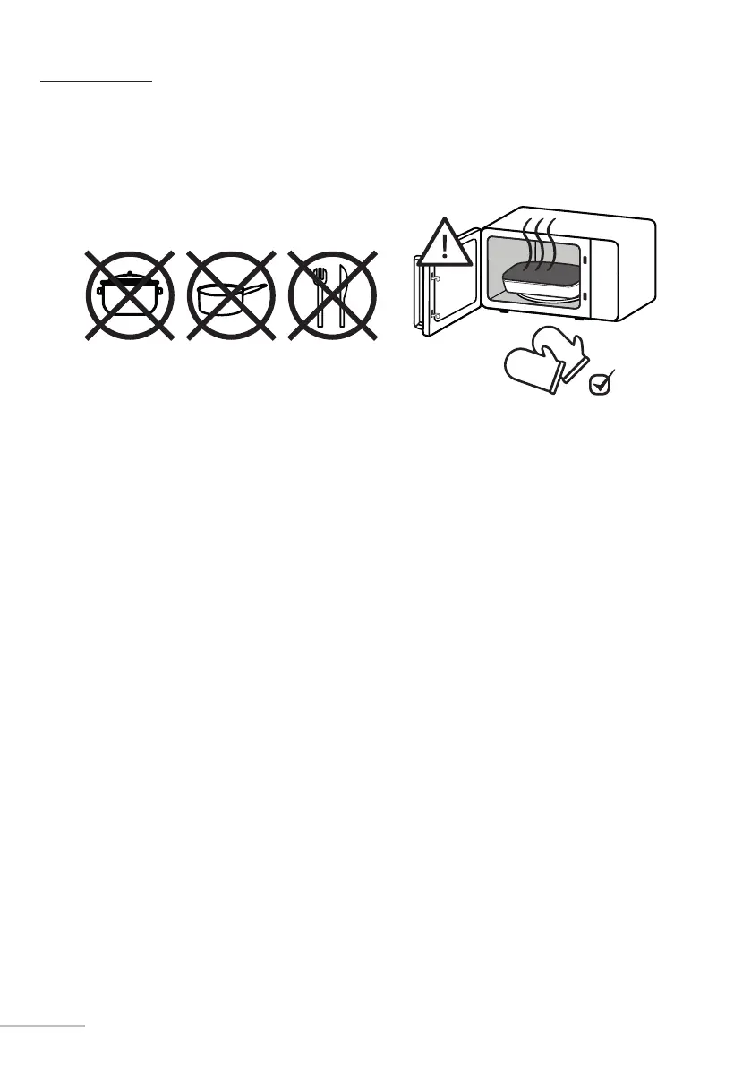 • N’utilisez jamais de récipients/plats en métal, de papier aluminium, de produits en papier