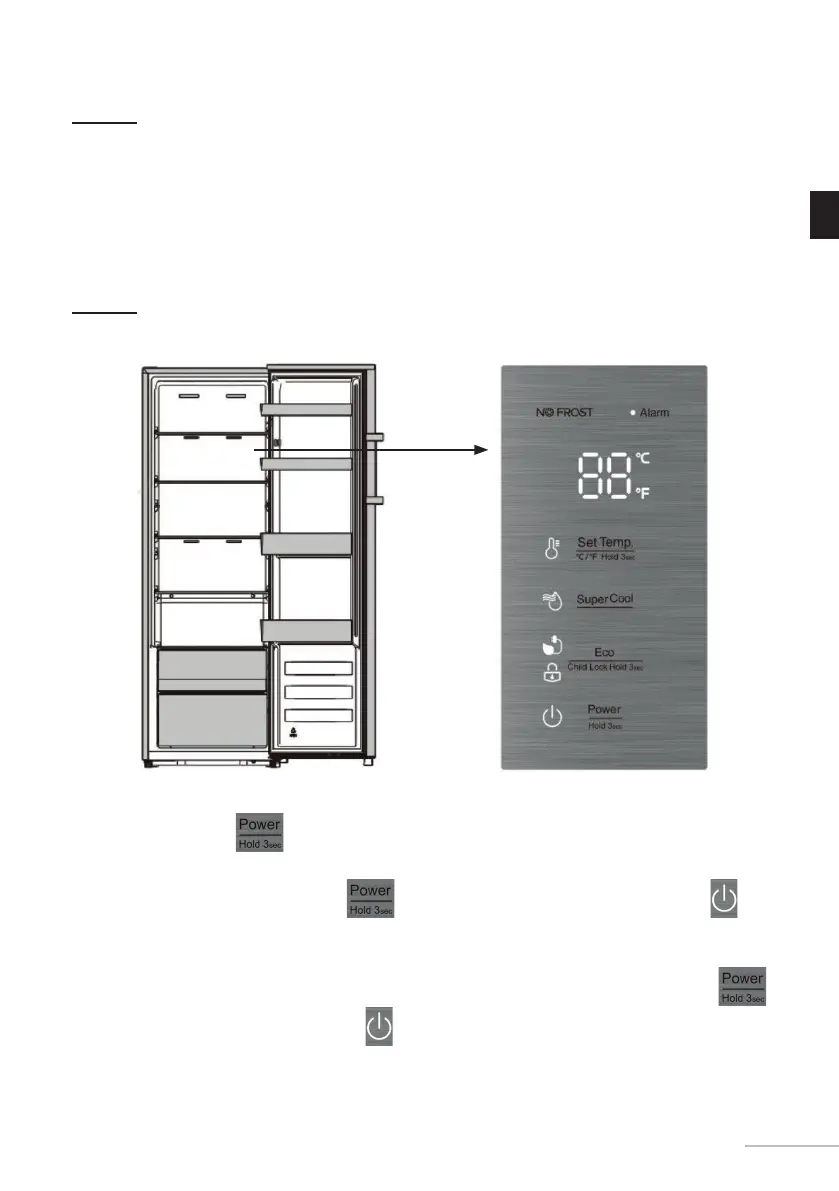 pendant 3 secondes, le témoin lumineux est éteint, le réfrigérateur s'allume.