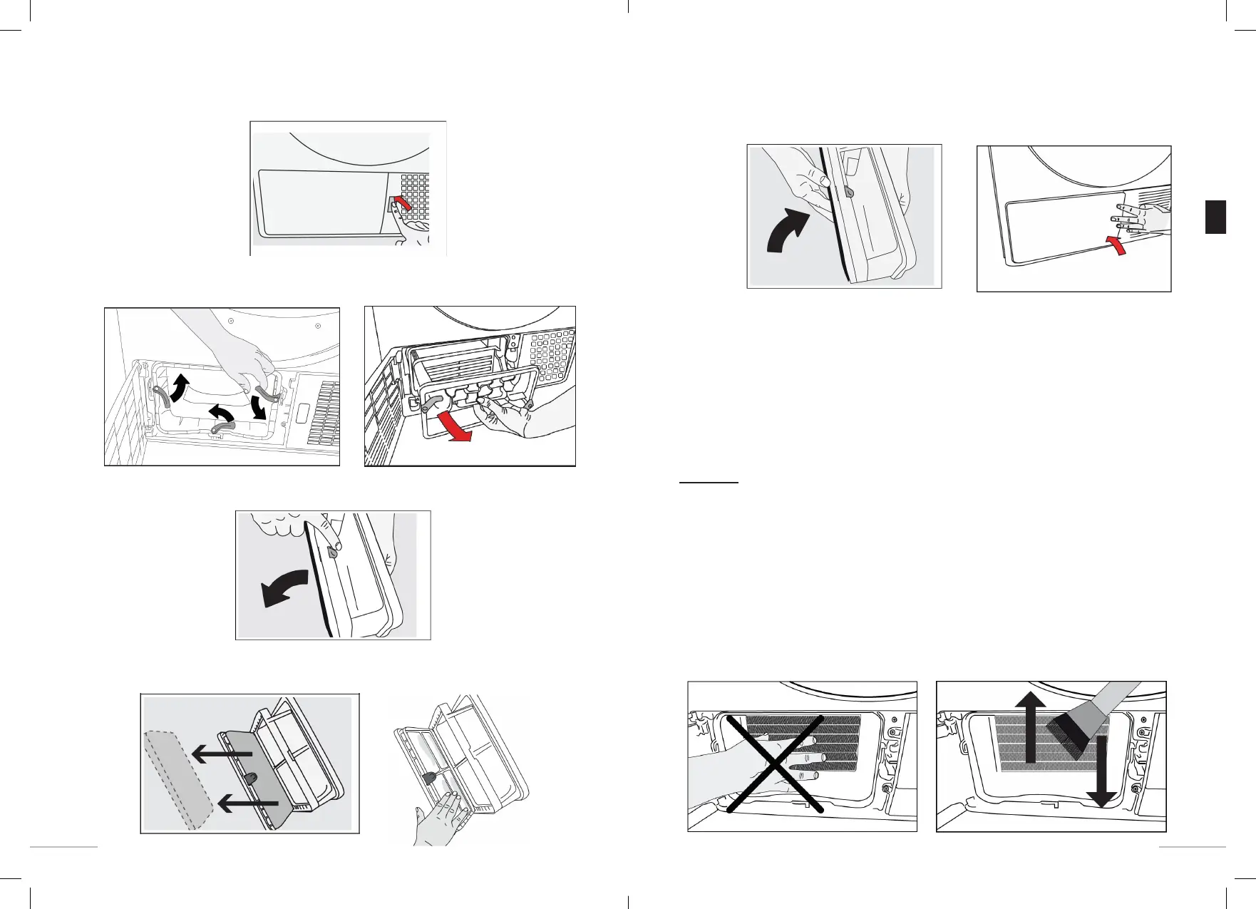 NOTE: cleaning towards the right and left can damage the condenser fins. In this case,