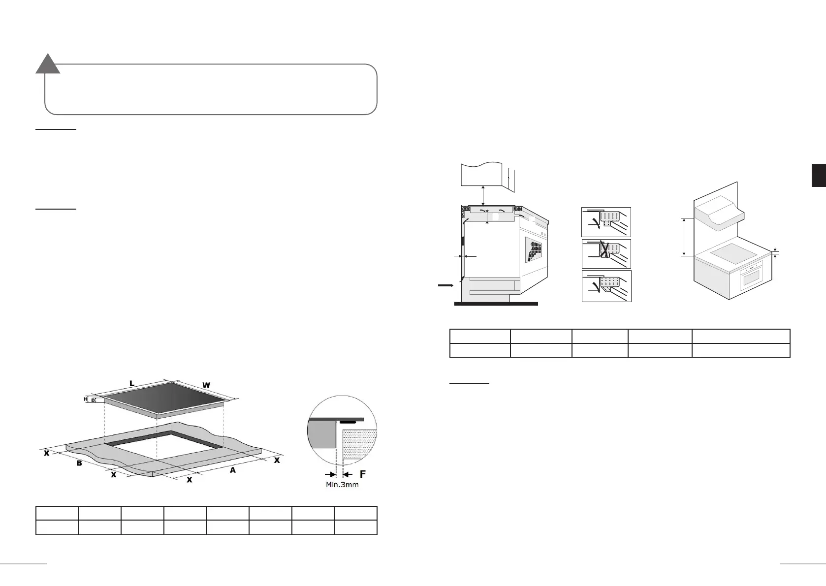 Der Sicherheitsabstand zwischen den Seiten des Kochfelds und den Innenflächen der