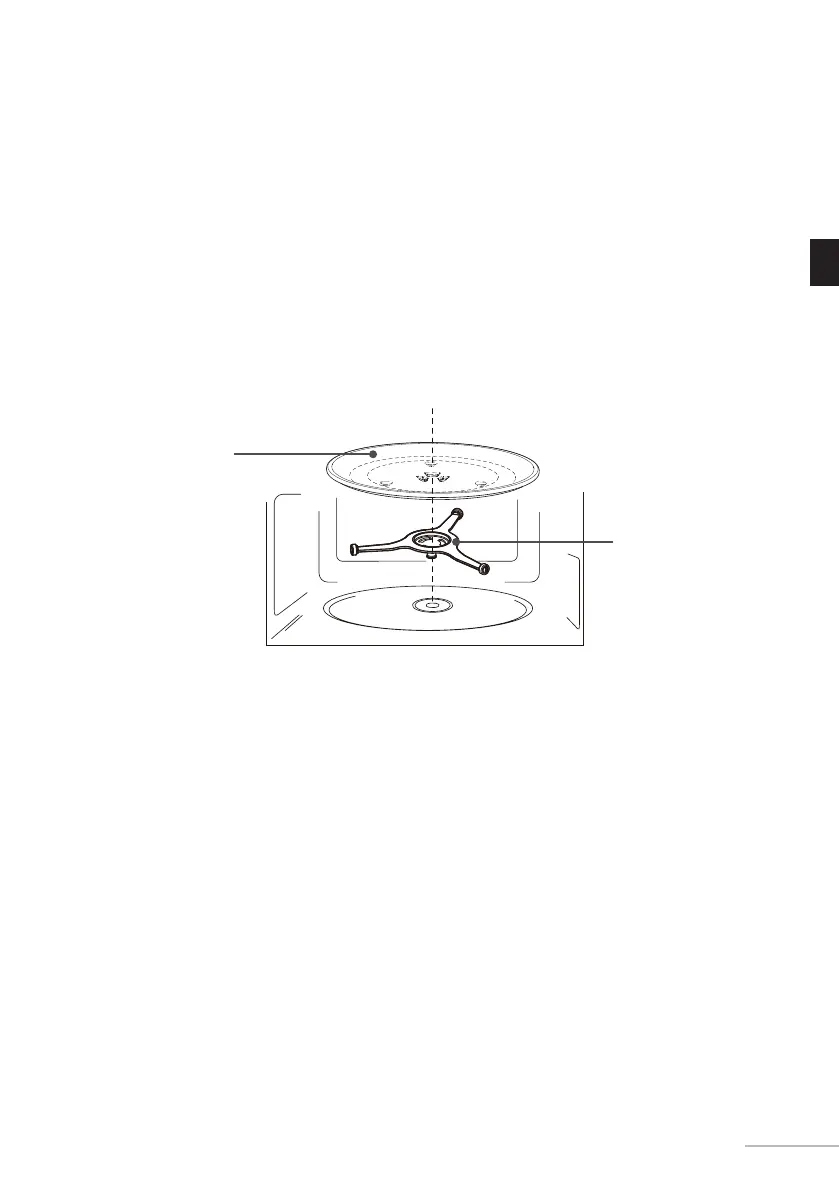 • Place food/containers on the glass tray centrally to prevent the dish from knocking against