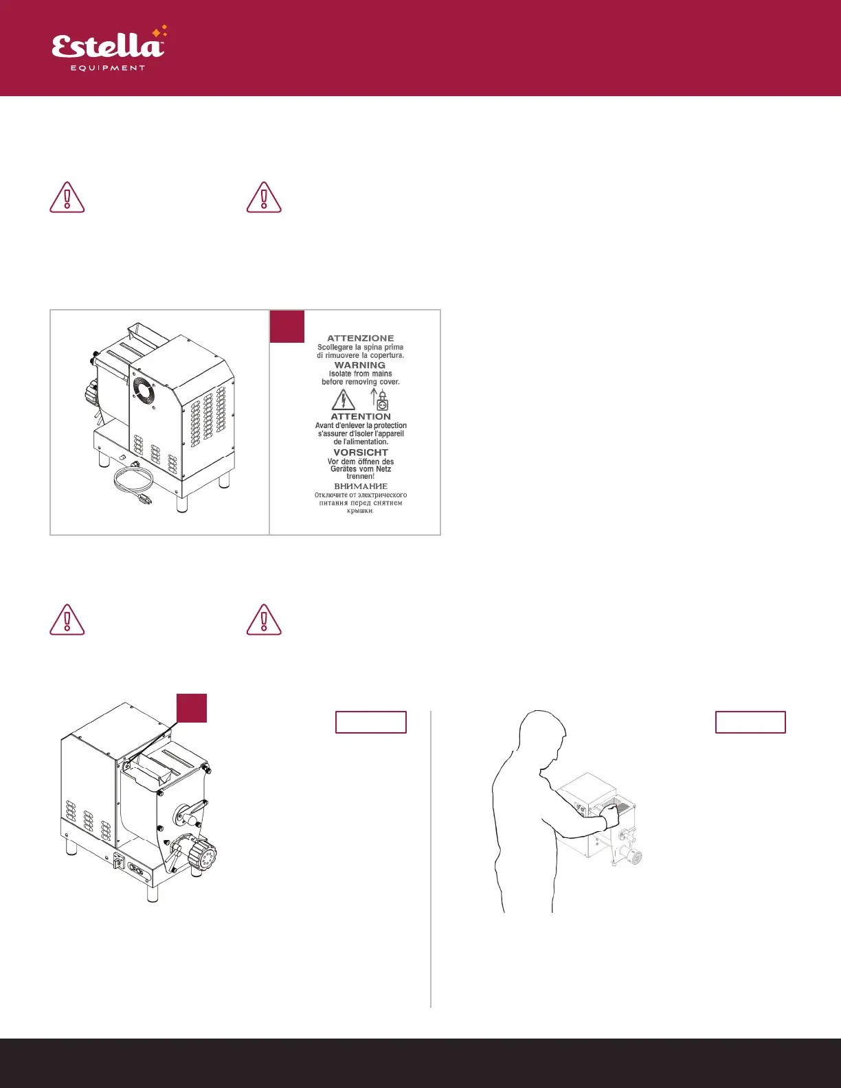 DO NOT intervene on the electrical components when the machine is connected to the mains power supply.