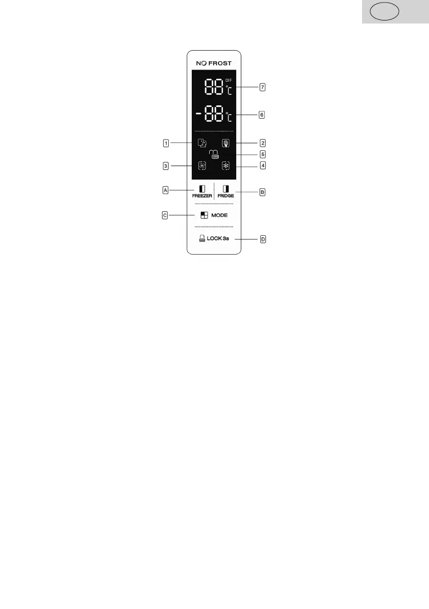 A Stlačením nastavíte teplotu mraziaceho oddielu (vľavo) od -14 °C do -22 °C.