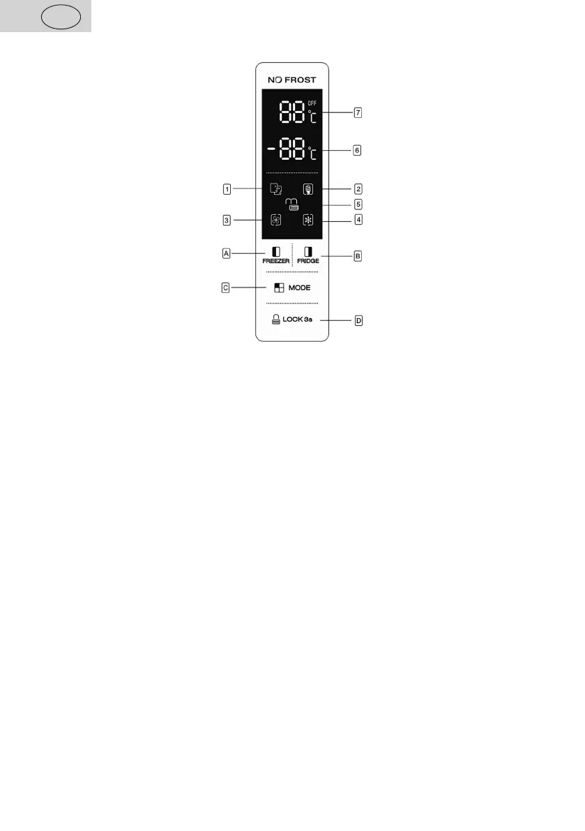 6 Wyświetla temperaturę ustawioną dla części zamrażarki.