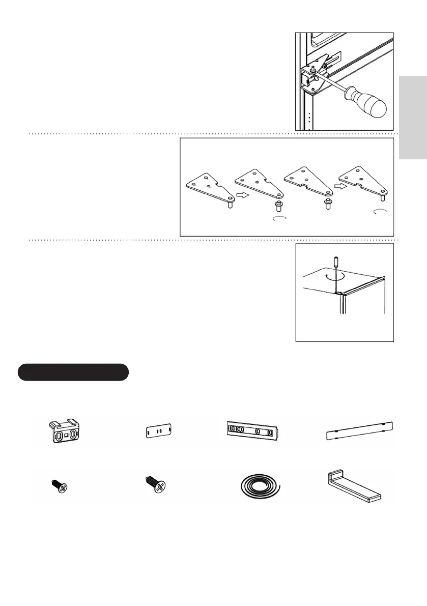 27x krátka skrutka 2x dlhá skrutka 1x gumové tesnenie 2x kryt strednej