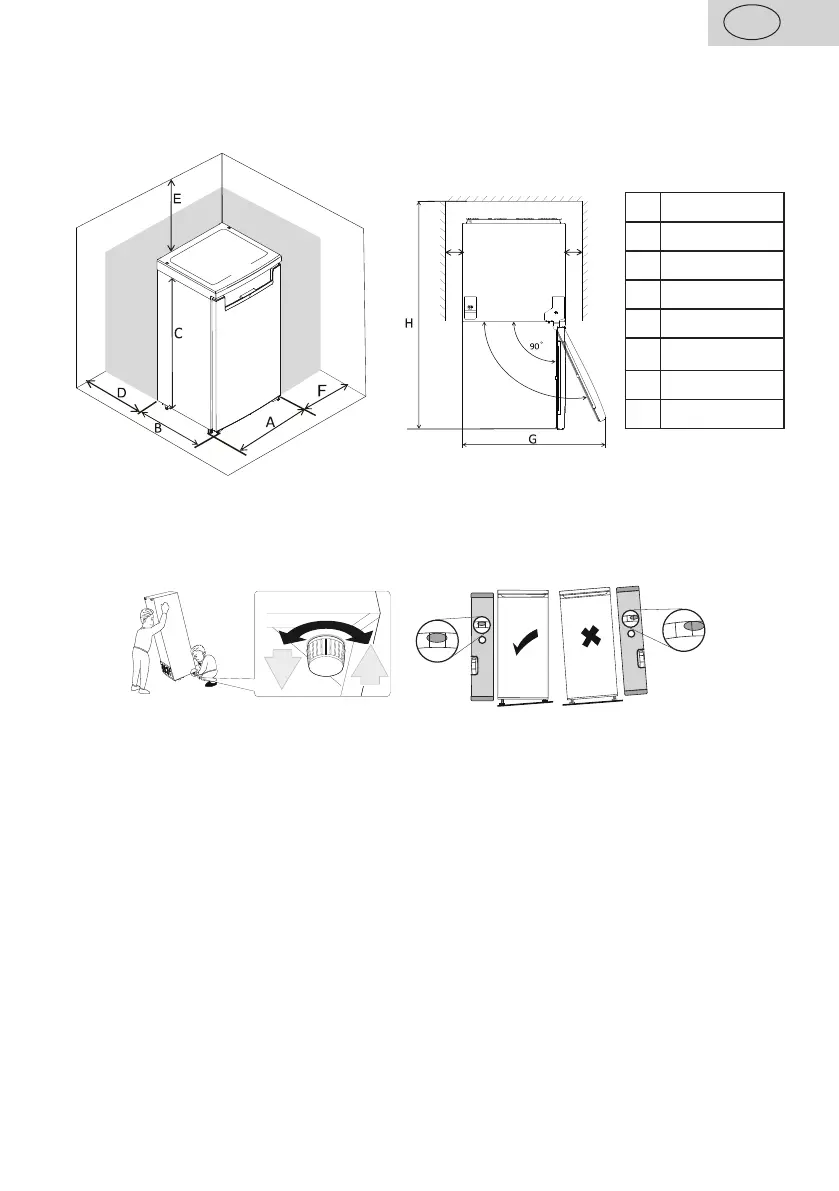 • Pokud není spotřebič vyrovnaný, dveře a magnetické těsnění nebudou dobře doléhat.