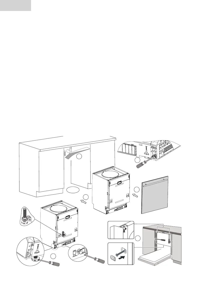 8. Egyenesítse ki a mosogatógépet! A hátsó lábat phillips csavarhúzó állíthatja be,
