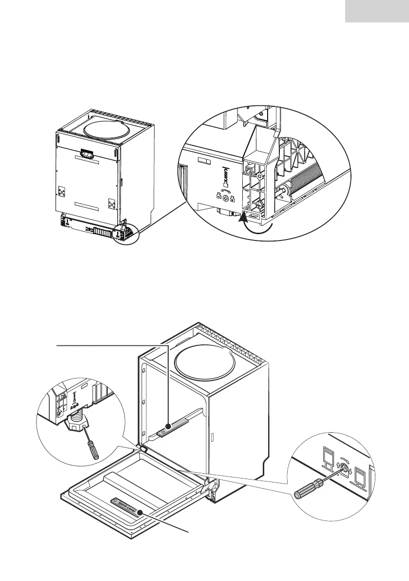 3. Eközben figyeljen arra, hogy a mosogatógép ne dőljön el!