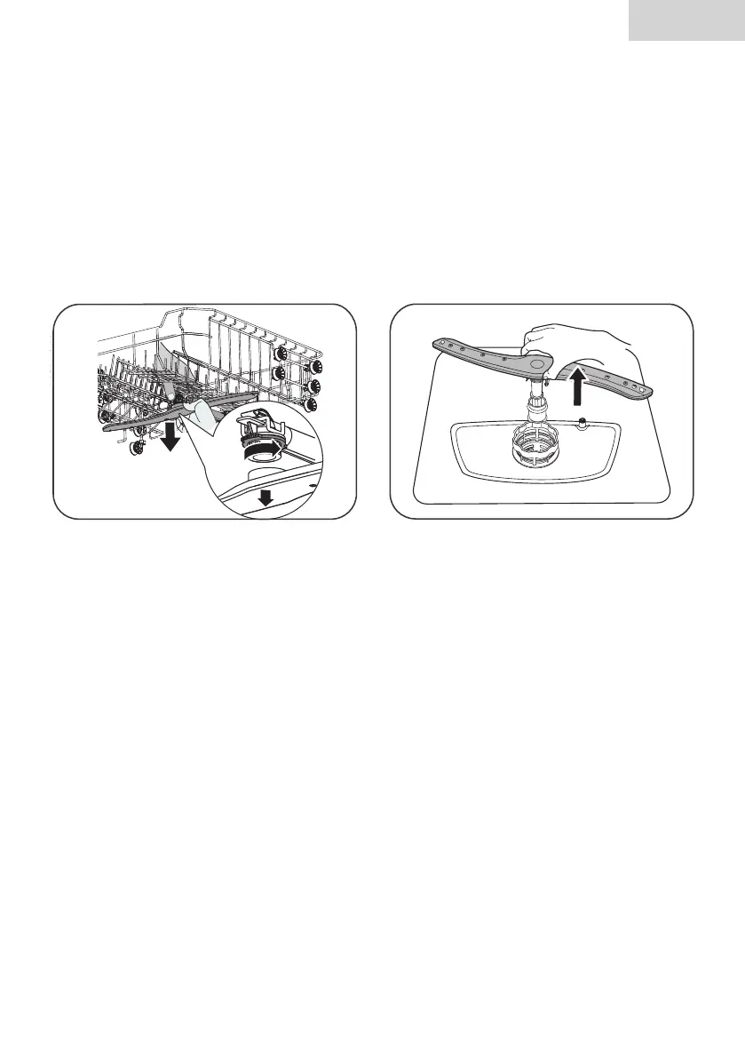 • Aby wyjąć ramiona spryskujące należy chwycić ramię w środku. Pociągnąć do góry