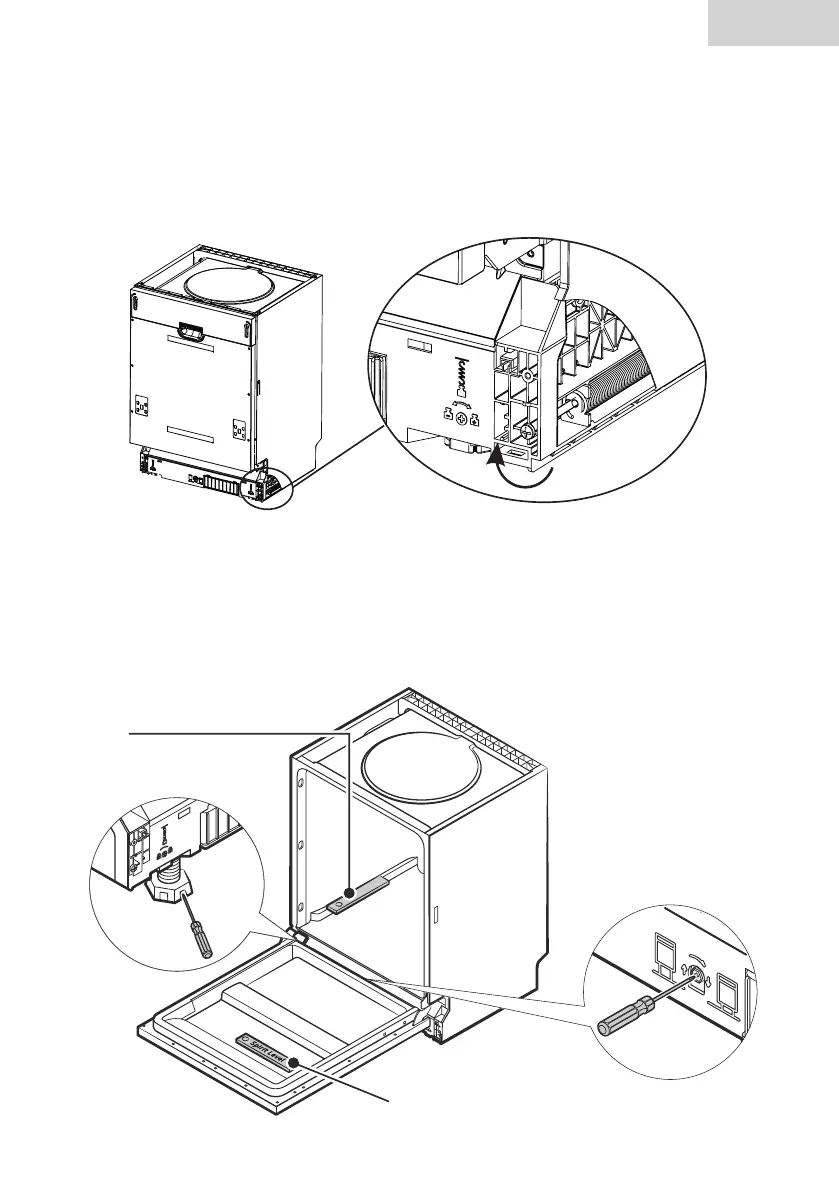 2. Wypoziomuj zmywarkę, regulując oddzielnie trzy nóżki regulacyjne.